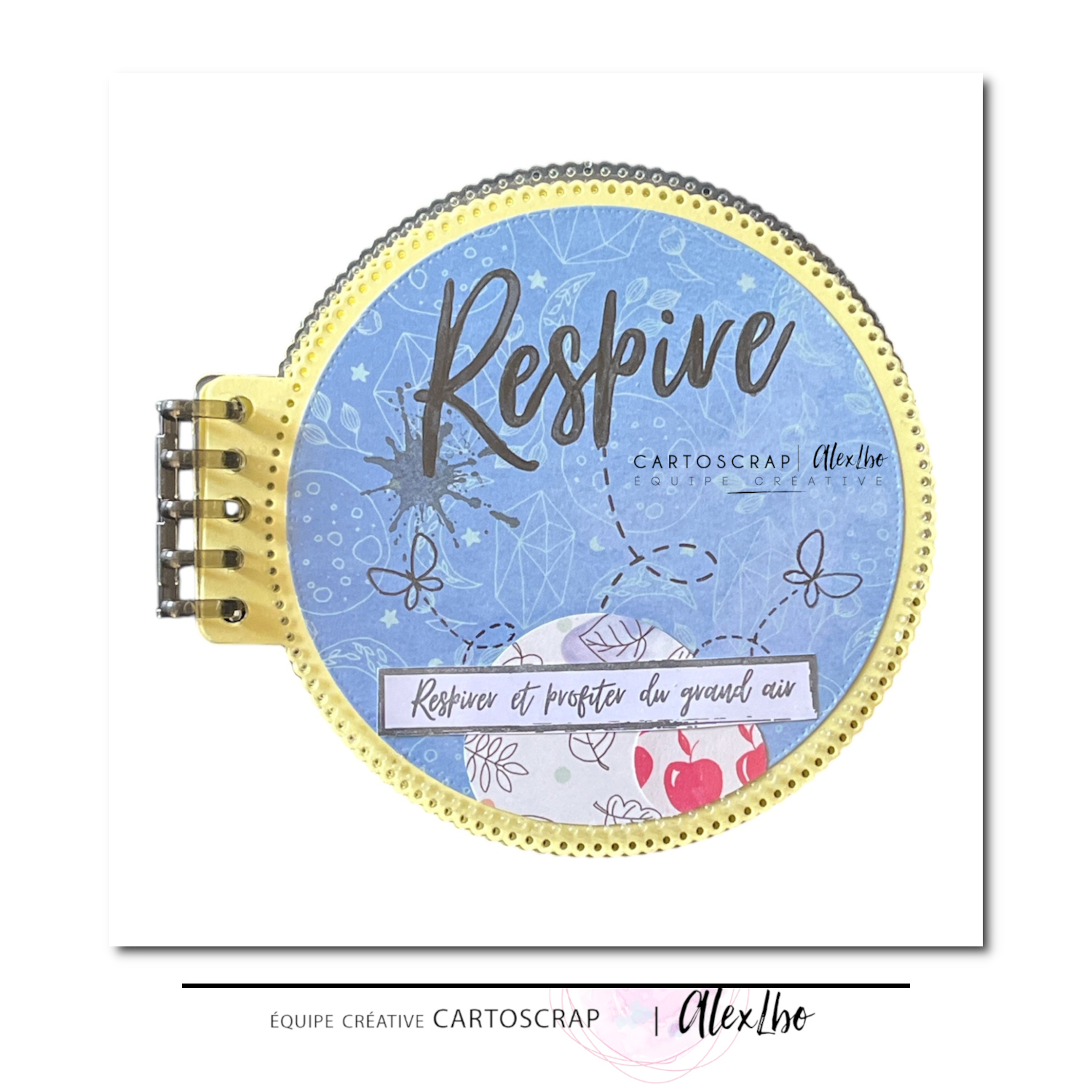 J’ai également ajouté le mot “Respire”, issu d’une planche de tampons Cartoscrap, qui donne le ton de l’album : un projet doux, apaisant, comme une invitation à profiter de l’instant présent.