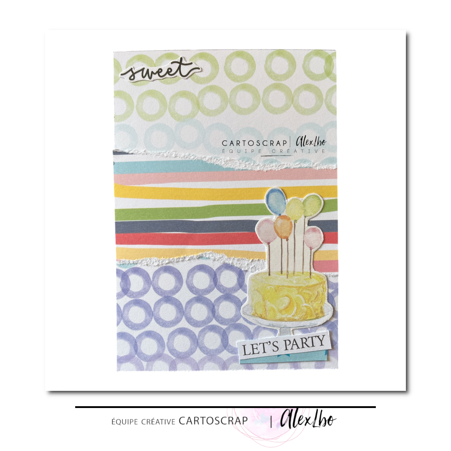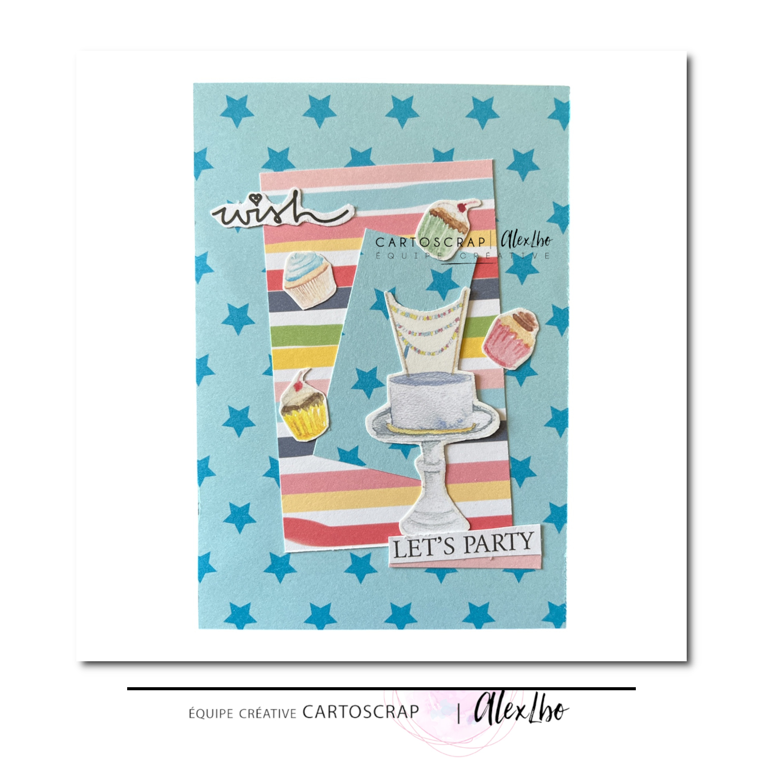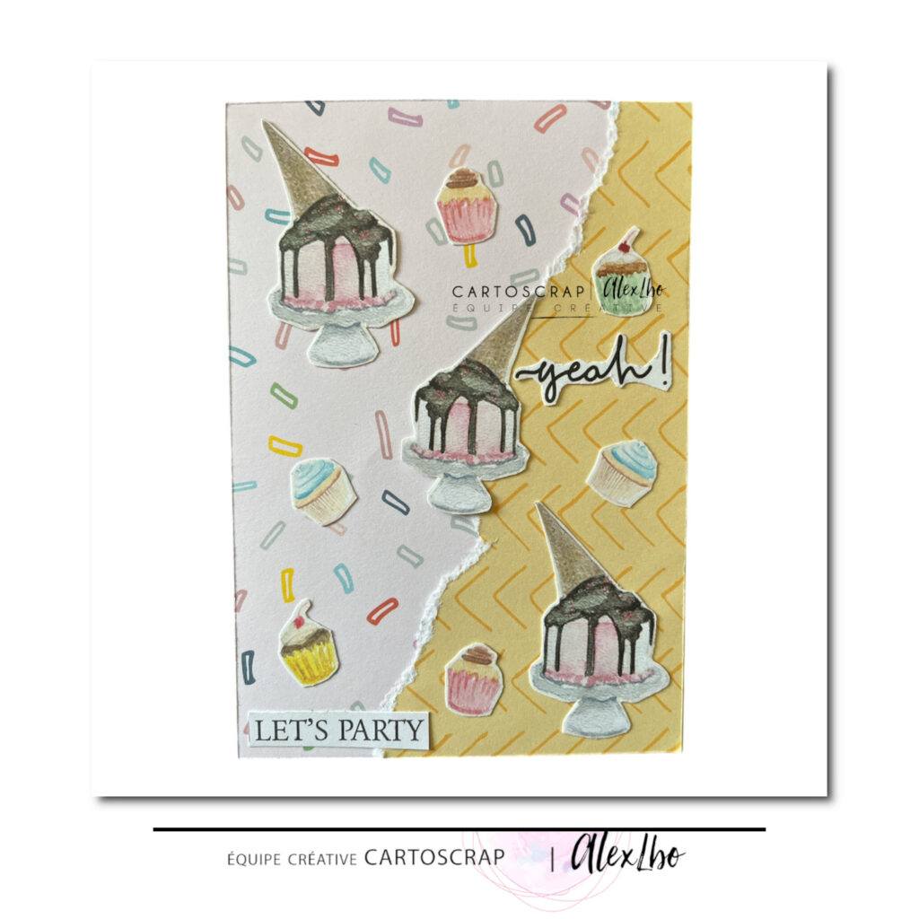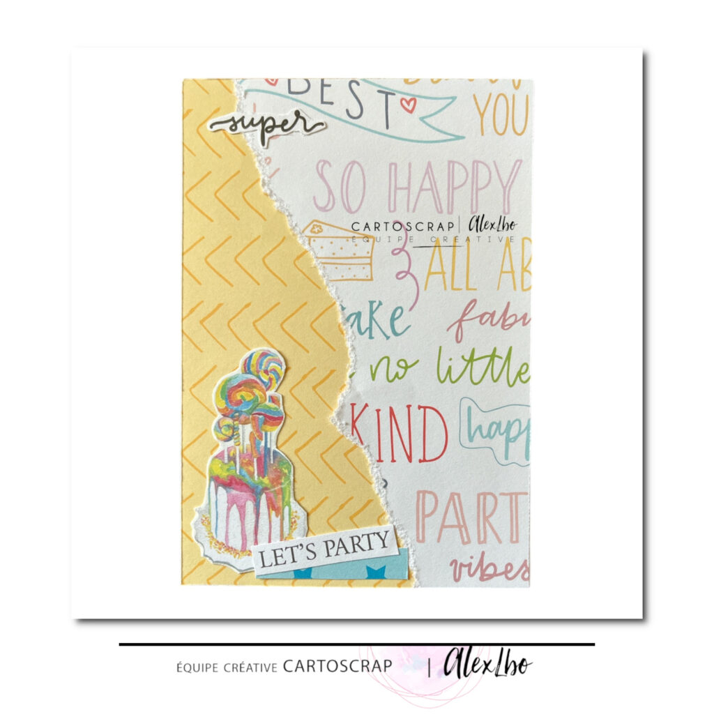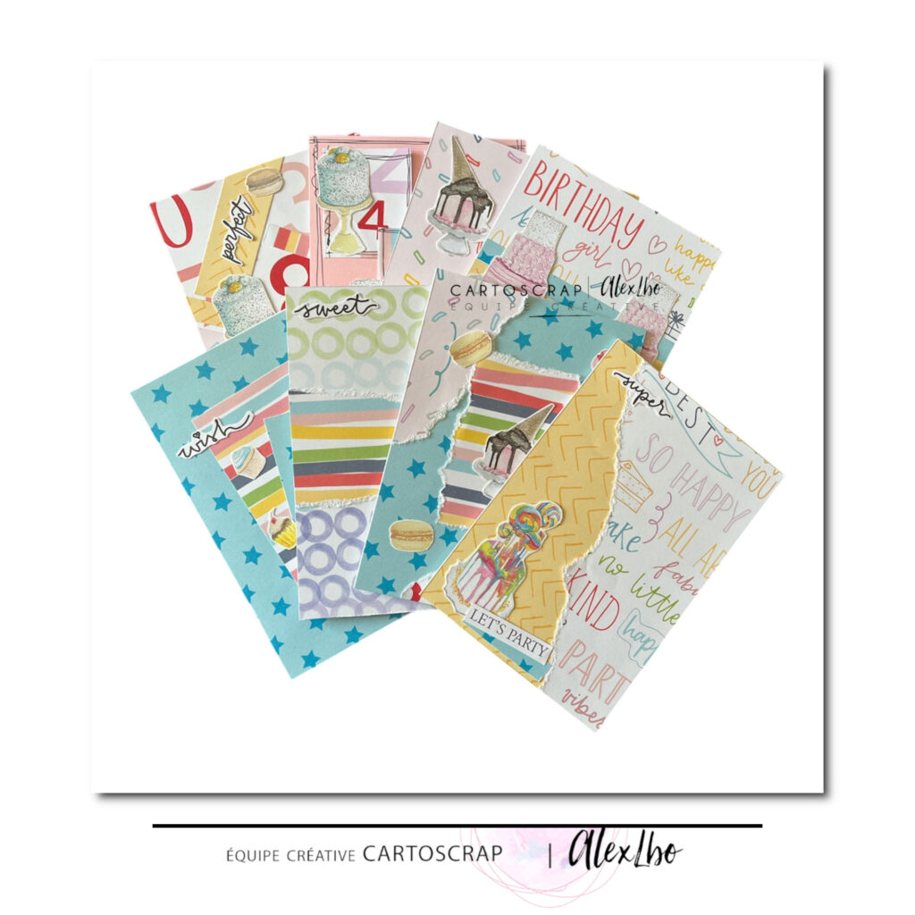 J’espère que cette idée vous inspirera et vous donnera envie de ressortir vos chutes pour créer, vous aussi, une série de cartes festives avec la collection Let’s Party disponible chez Cartoscrap 🎉
