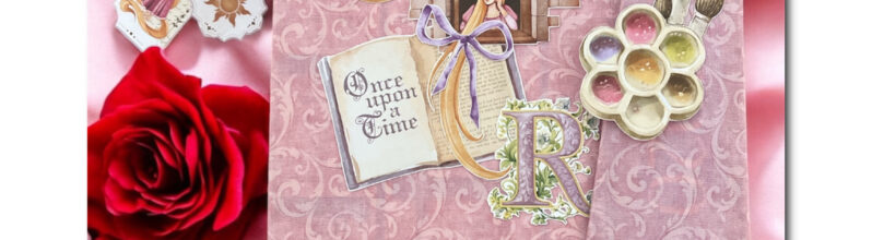 Pour ce projet un peu spécial, j’ai eu envie de créer un mini-album souvenir sur le thème de Raiponce, à partir de photos de ma fille et moi déguisées en princesse dans notre jardin.