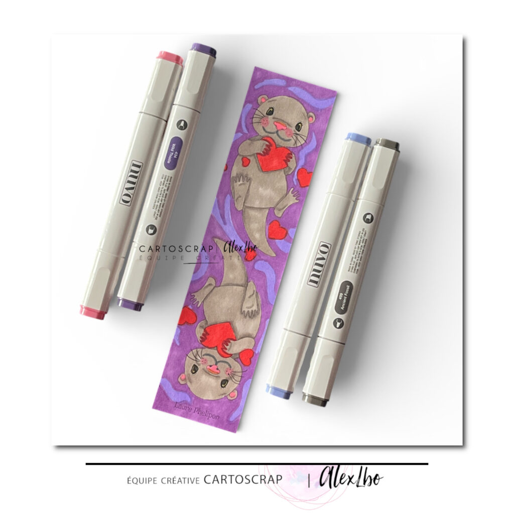 Les feutres à alcool Nuvo sont de véritables alliés pour sublimer les illustrations, qu’elles soient utilisées pour des cartes, des marque-pages ou des pages de scrap. Associés aux dessins de Laure Phelipon, ils permettent de créer des projets doux, expressifs et pleins de charme.