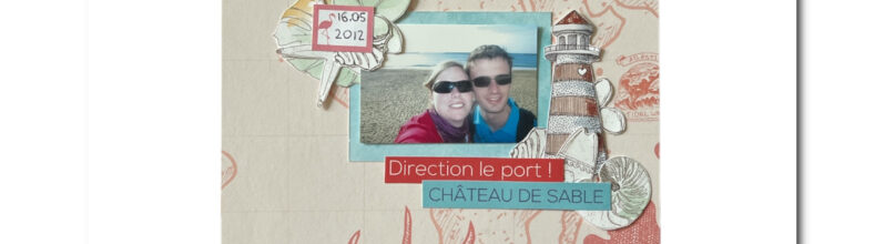 Je vous propose donc une page sur le thème de l’été, de la plage avec un phare, des coquillages et des fleurs sur fond de carte du monde.