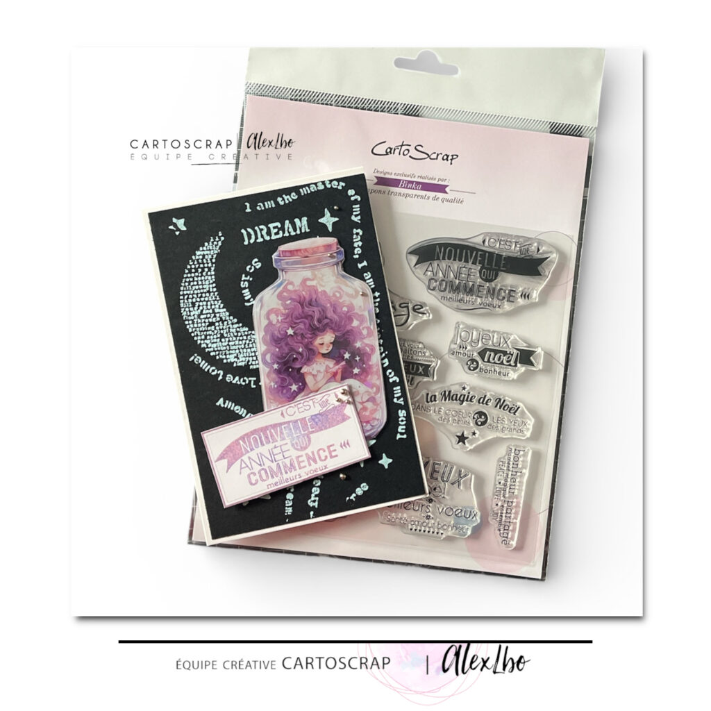 J’espère que cette création vous inspirera pour vos propres cartes de vœux et vous donnera envie de jouer avec les textures, les pochoirs et les magnifiques tampons proposés par Cartoscrap.