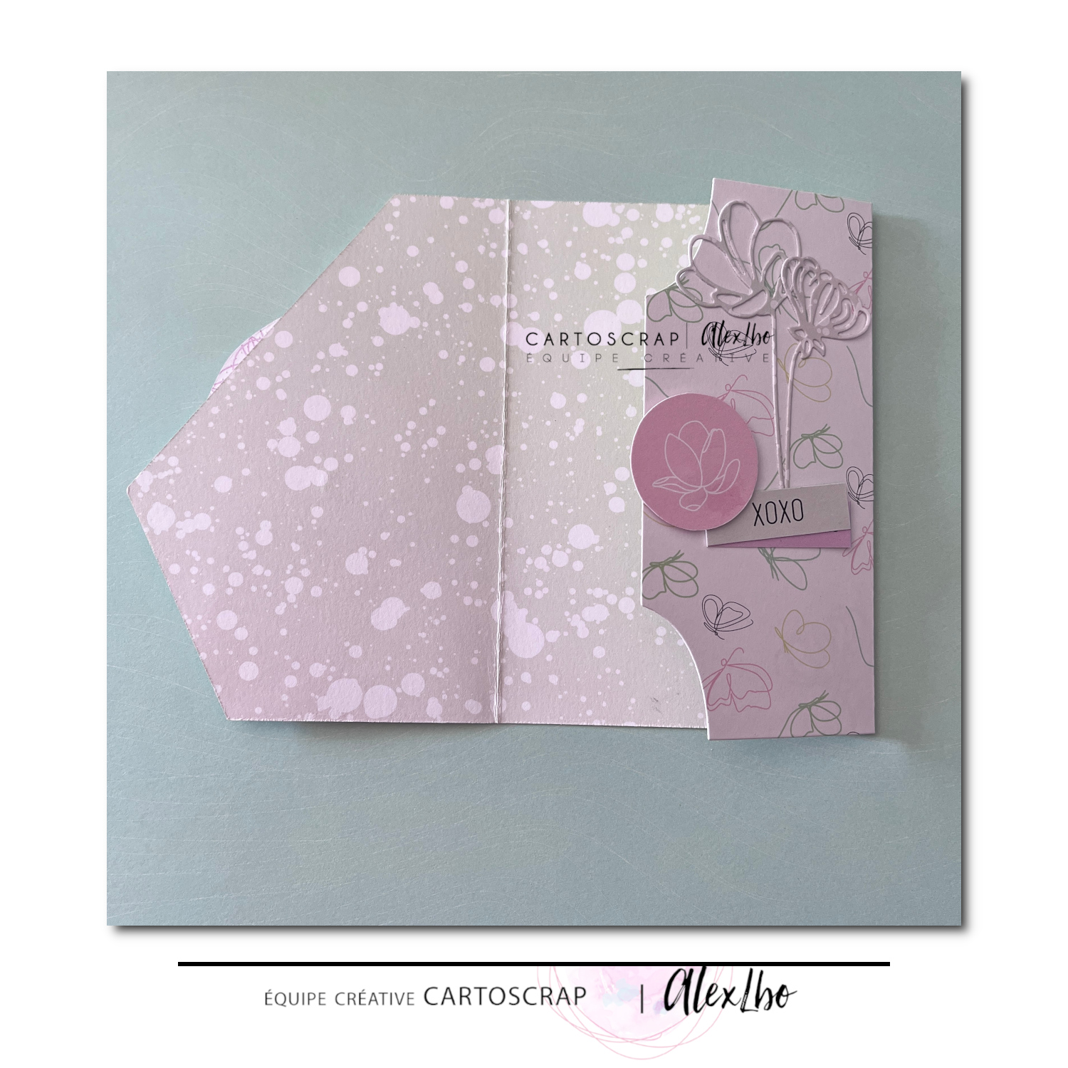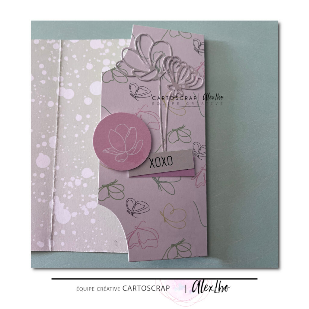 J’ai utilisé un papier de la collection So Flowers pour la base. Les motifs floraux très fins et les couleurs pastel apportent immédiatement une ambiance douce et légère, parfaite pour une carte pleine de tendresse.
